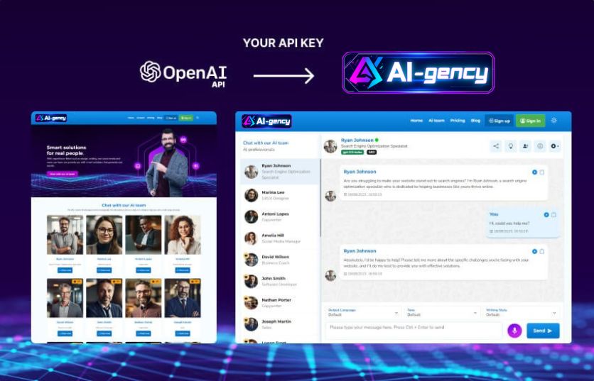 The Aigency script is a robust and versatile tool that integrates and customizes OpenAI's Chat GPT for your website, also offering the opportunity to monetize these interactions.