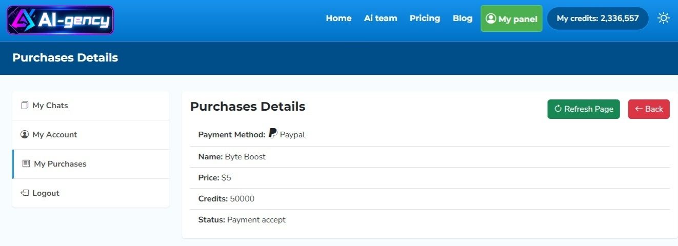 Select a package and proceed to make a purchase using the PayPal payment method.
