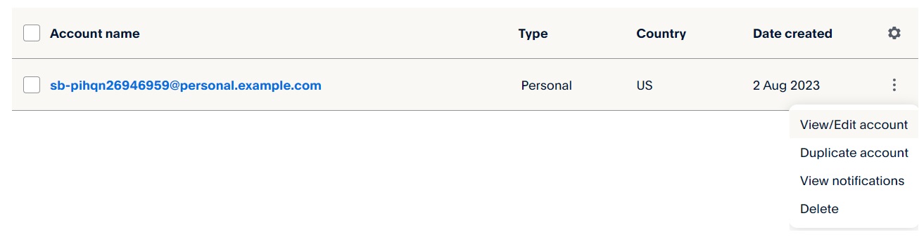Next, click on the "..." icon corresponding to the account you created and select the "View/Edit Account" option.