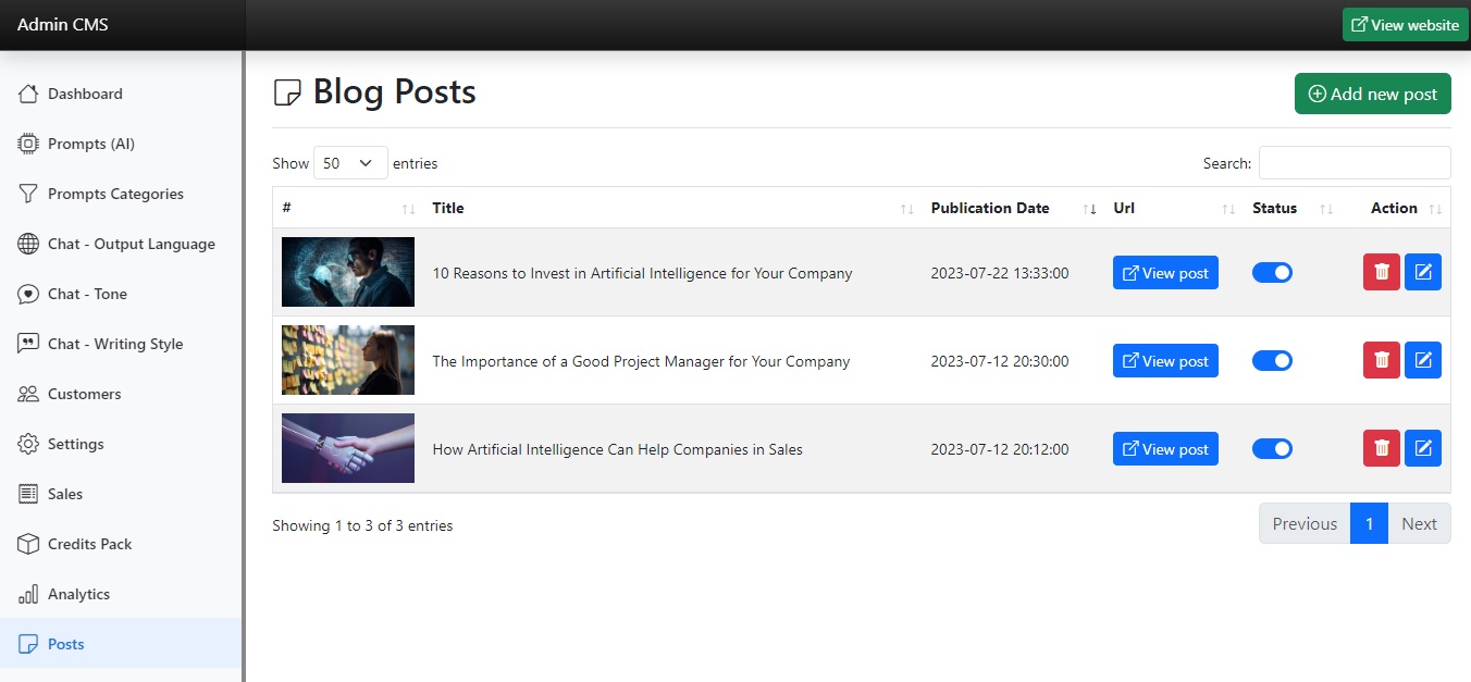 The Blog Posts feature is a tool that allows you to create a blog quickly and efficiently directly on your website.