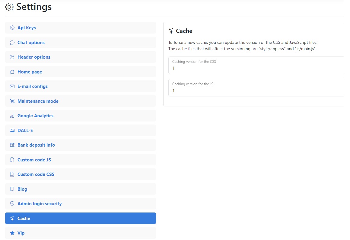 To ensure that the latest versions of CSS and JavaScript files are loaded by visitors, you can force a new cache copy by updating the version of the CSS and JavaScript files. The cache files that will be affected by the version change are "style/app.css" and "js/main.js".
